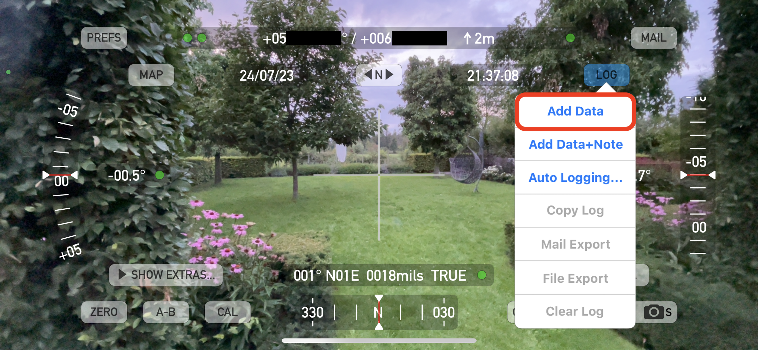 Recently I found a video from Emerald Hills Skies describing the use of a smartphone app to automate this process and with a lot more precision. The app used is Theodolite. Upon opening the app, the only thing you need to do is to point north, place the crosshair on the visible horizon-line and press the Add Data button. Slowly turn around on the spot, while following the horizon profile and keep tapping the Add Data button. Go around 360 degrees, keep tapping and it is easy to have 50 or 100 datapoints describing a very precise horizon profile.