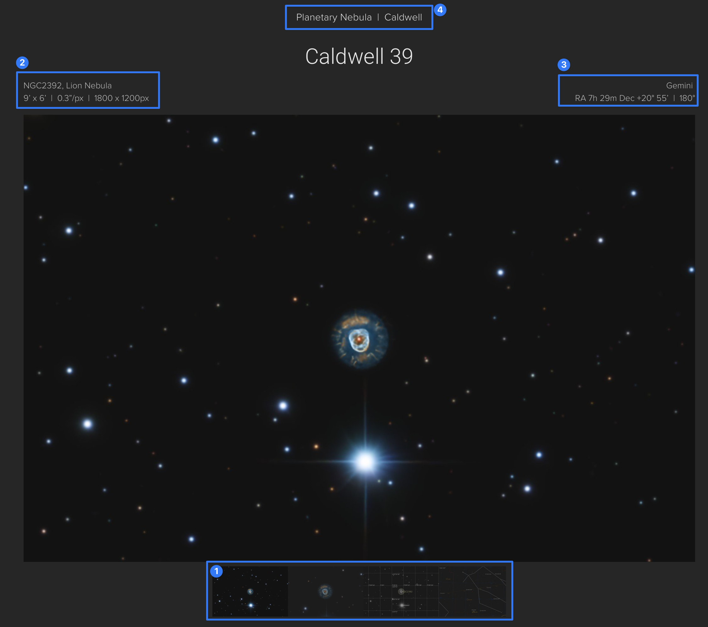 Information about the image has moved from several lists to the top the image (name, resolution (2), constellation, location (3), etc)